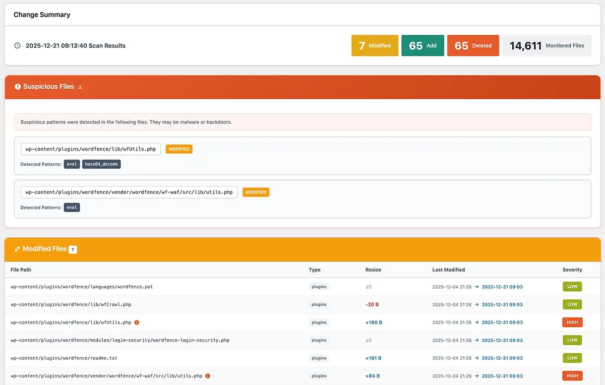 wp-config.phpの中に、外部ファイルを強制的にrequire_onceする記述が増えている。 - ファイルの最終更新日時が、自分が意図していない時間に更新されている(偽装の痕跡)。